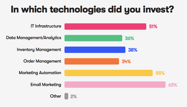Business owners are catching up to the hype. Last year, 46% of eCommerce businesses spent 40% more on technology tools.