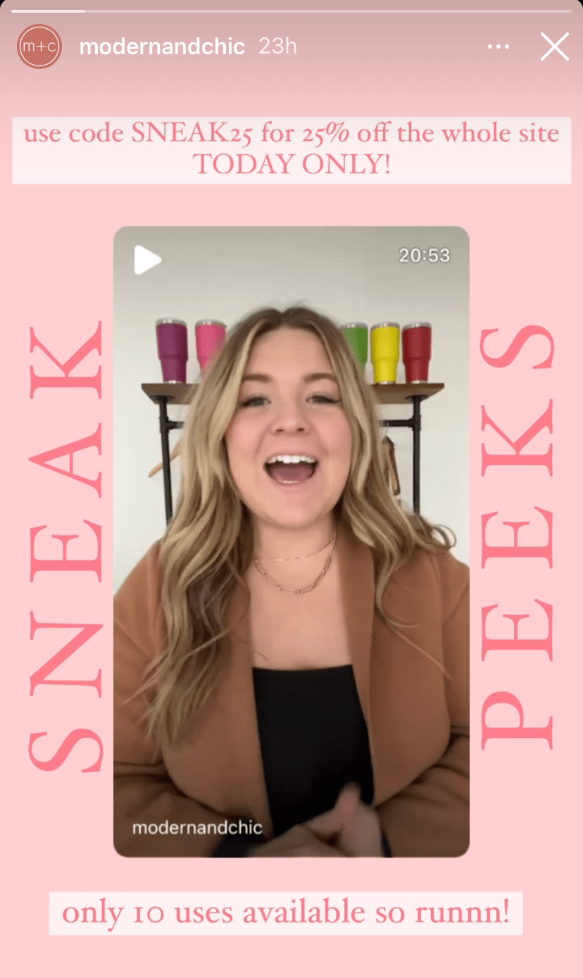 Modern+chic rewards its followers with sneak peeks at its products and special promotions. High-resolution camera equipment is no longer needed. A smartphone, an enthusiastic personality, and quality content are all you need to build connections.