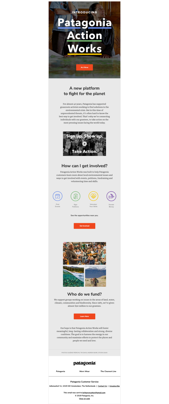 - Email #2: Patagonia's causes and customer invite