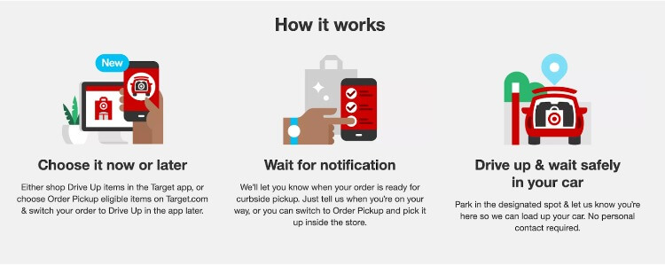 After that, they can notify Target when they’re on the way, what parking spot number they are in, or the type and color of car. The order is then taken out to the vehicle and loaded for the customer’s convenience.